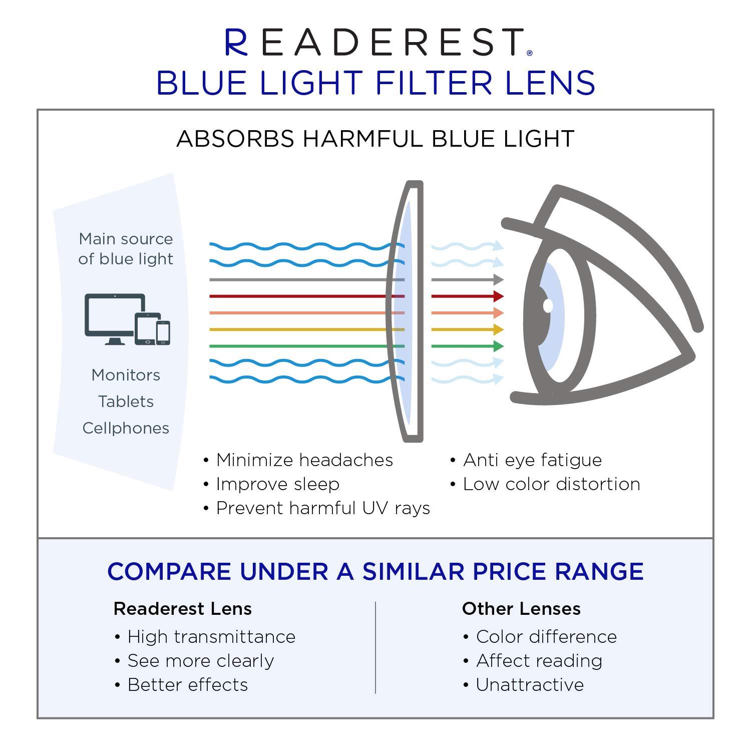- Blue Blocking Lenses - Protect your eyes from the harsh blue light of our daily devices.